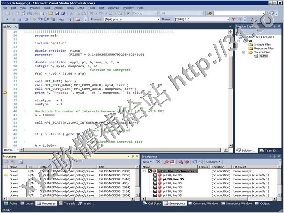 Fortran 編譯器與工具)完全集成到 Microsoft* Visual Studio* 2008 中。PVF 具有 PGI
